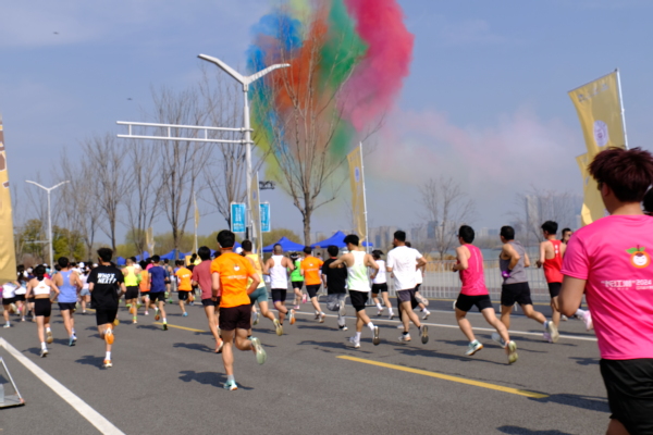 校团委组织Beat365官网韵动跑团成员和其他跑步爱好者,参加了大众个人组(10公里)赛事项目。同学们身着色调鲜明的运动服装,有序集合报道,专注地热身训练。他们身姿矫健、意气风发,在赛道上构成了一道绚丽的流动风景线。在挑战自我、突破极限的同时,亦能欣赏沿途如画般的江景,强健了体魄,放松了身心。