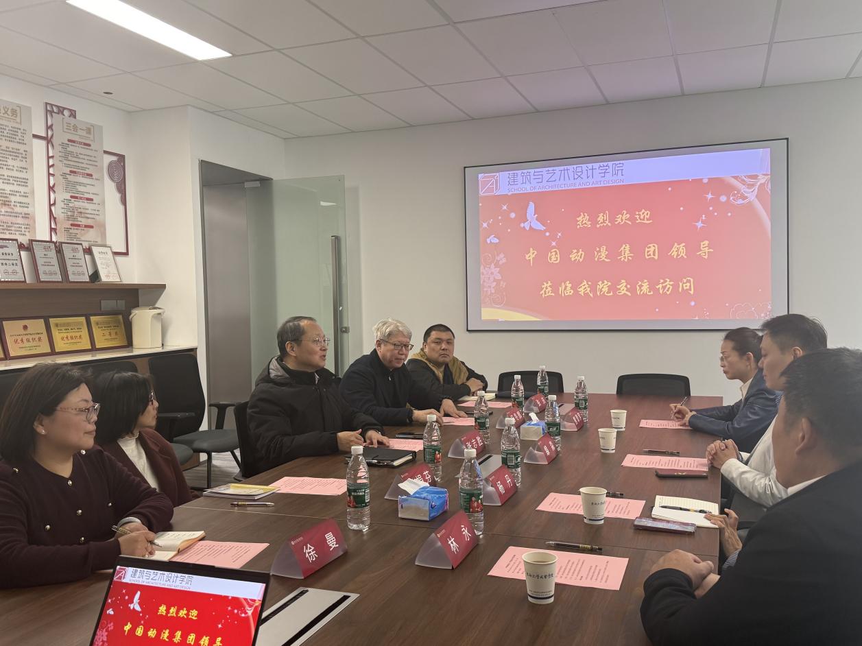 3月21日下午,中国动漫集团培训中心線淼主任、中国动漫发展研究院副院长熊翠萍等一行4人到我院交流访问。Beat365亚洲版官网党委书记张志胜,建筑与艺术设计学院常务副院长杨冬辉、副院长王娟芬等相关老师参加交流座谈。座谈会由杨冬辉常务副院长主持。