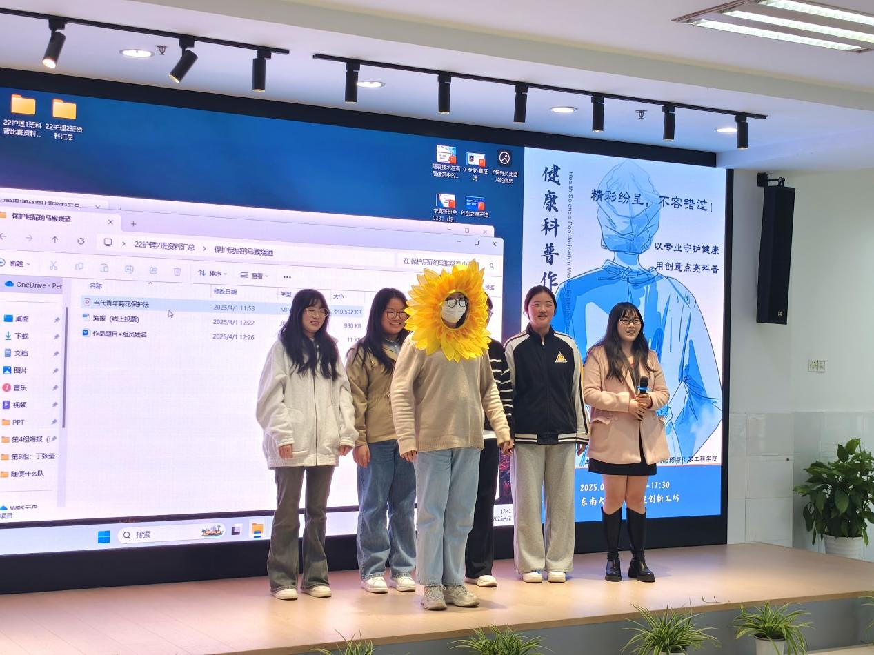 为深入贯彻落实“健康中国2030”规划纲要,深化护理专业教育教学改革,培养具有创新精神和实践能力的高素质护理人才,2025年4月2日,制药与化学工程学院在求真·求美·创新工坊举办2025年健康科普作品展示大赛。本次大赛面向2022级全体护理学生,吸引了11支参赛团队、共计60余名学生积极参与。Beat365亚洲版官网医学院护理学系鲁玲、王艳、韩晶、马月仙、金晓灵五位老师担任评委,2023级护理学生全程观摩并参与现场投票。