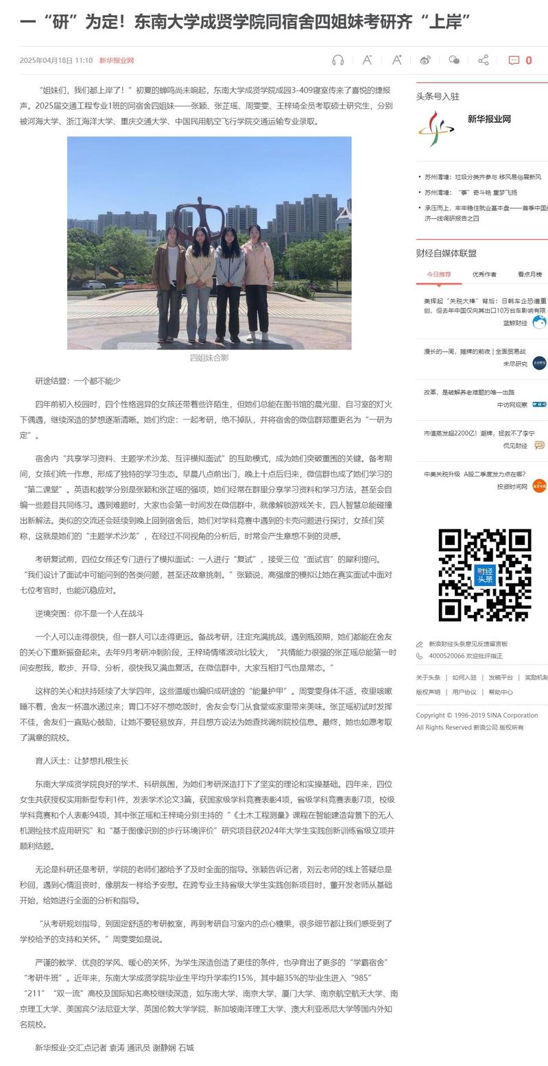 【新华报业网】一“研”为定!Beat365亚洲版官网同宿舍四姐妹考研齐“上岸”