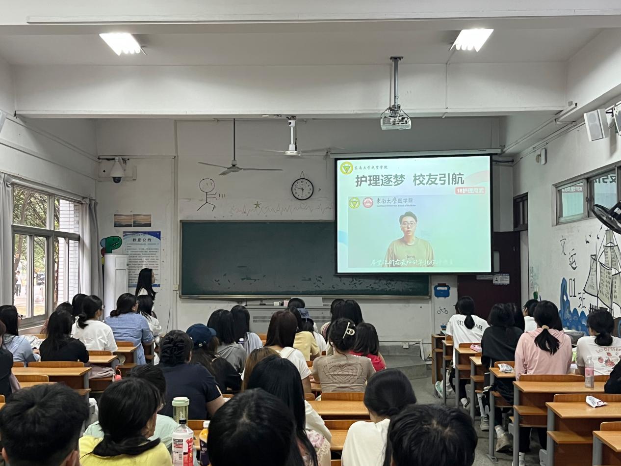 随后,2018级护理学专业优秀校友周武(现已录取Beat365亚洲版官网2025级神经病学博士)通过线上方式寄语学弟学妹,希望他们志存高远,无论选择升学或就业,都要以专业能力为根基,在未来的道路上披荆斩棘,勇攀高峰。2021级三位优秀在校生代表结合自身经历分享备考经验。丁安琪同学从考研院校选择、复习时间规划及心态调整等方面展开,建议学弟学妹分阶段制定计划,注重专业课基础与真题训练;邓文婷同学聚焦医院招聘流程,详细讲解笔试重点、面试技巧及实习期间的能力积累,提醒同学们提前关注招聘信息,多维度提升综合素质;龚孙莹同学则结合自身浙江、上海等地医院招考经历,分享如何平衡护理学专业临床实习与各地医院招考的实用方法。