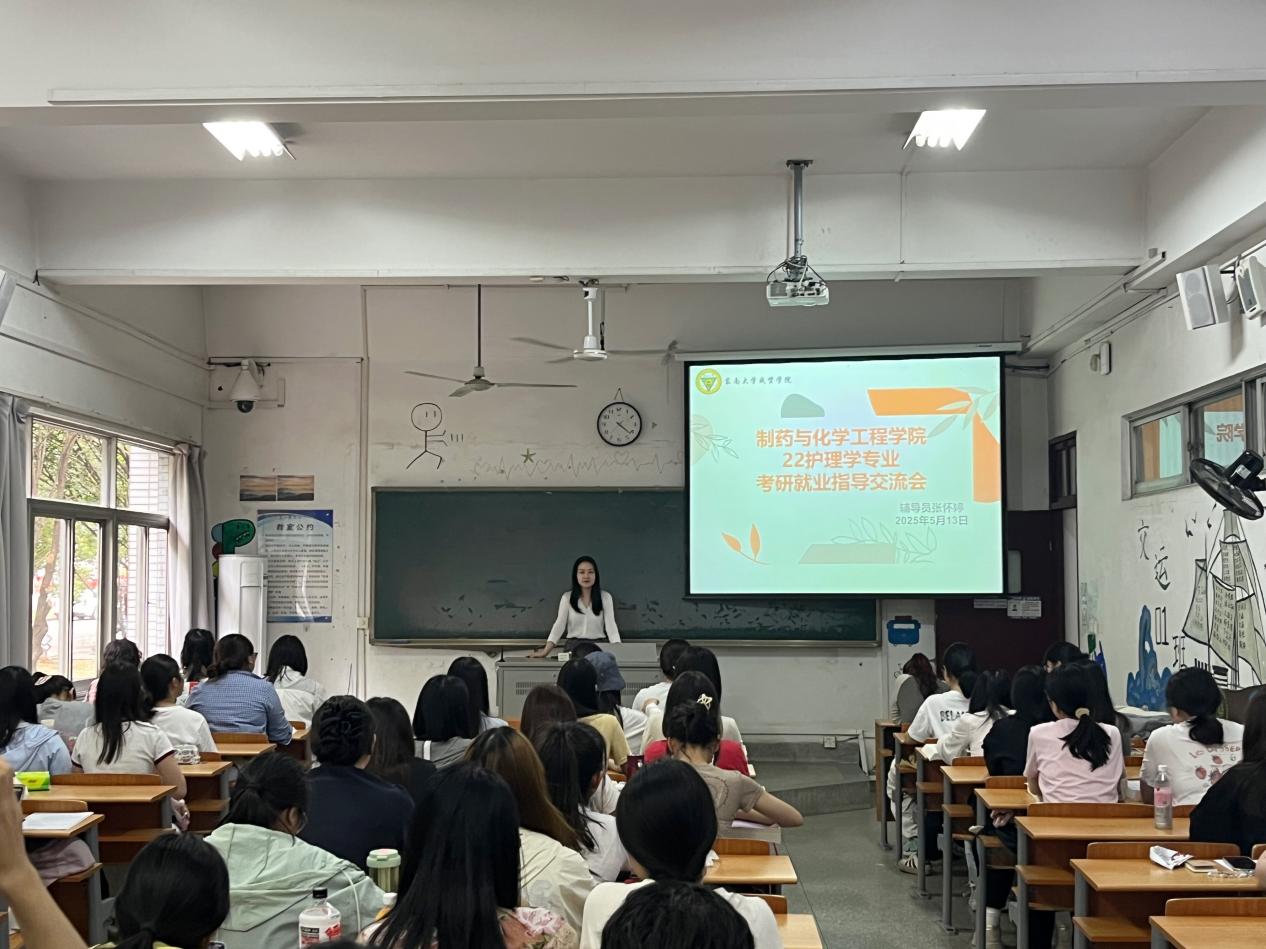 为更有针对性地指导学生规划职业生涯,5月13日,制药与化学工程学院组织召开了2022级护理学专业考研就业指导交流会。会议由辅导员张怀婷主持,2022级护理学专业全体学生参加,并邀请已毕业的优秀校友和2021级优秀学生代表分享经验。