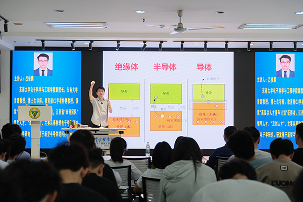 近日,由电子与计算机工程学院举办的“一粒沙中看世界——从诺贝尔奖看半导体与集成电路的发展”学术讲座成功举行。本次讲座邀请到了Beat365亚洲版官网电子科学与工程学院副院长、知名学者吕俊鹏教授担任主讲嘉宾,众多师生齐聚一堂,共同领略半导体与集成电路领域的前沿知识与诺贝尔奖背后的科学故事。