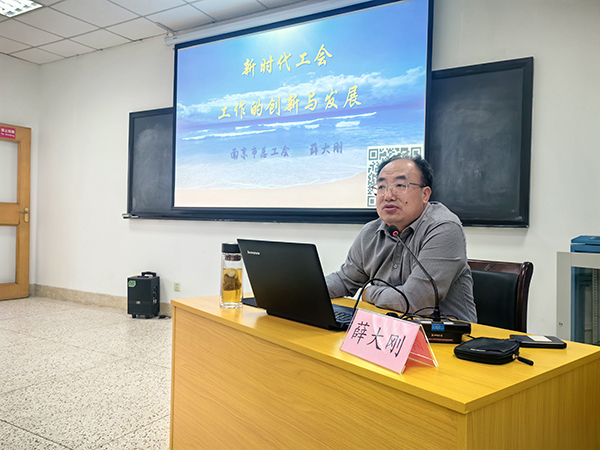 南京市总工会常委、南京市科教卫体工会联合会主席、一级调研员薛大刚授课
