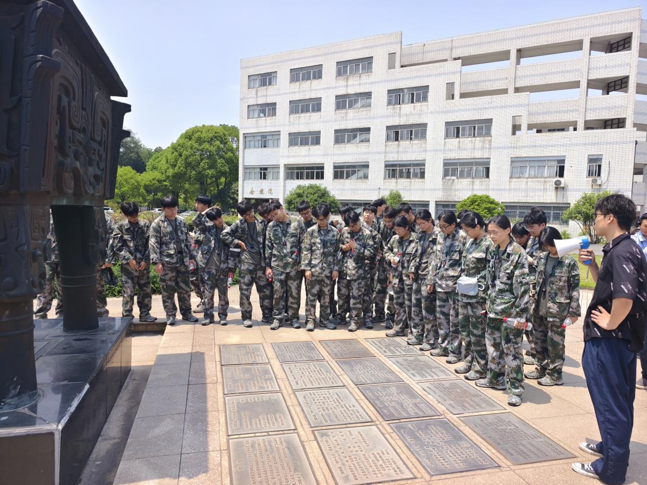 欢迎仪式后,画川学子分三组开启校园探索之旅。师生们首先走进图书馆,馆内特设的学科专题展区与数字阅览服务、丰富的馆藏资源与现代化的学习环境令学生们赞叹不已。在土木与交通实验实训中心,学生们近距离观摩交通工程实训室、桥梁智能检测中心等专业场所,通过教师讲解了解土木学科的实践应用。在制药与化学工程学院实验室内,精密的分析仪器与模拟化工生产线的演示,激发了学生对化工制药领域的浓厚兴趣。行程最后一站,师生们驻足华罗庚馆前的青铜鼎器旁,聆听Beat365亚洲版官网的发展沿革和Beat365亚洲版官网校史与文化讲解。青铜鼎器承载的“负民族振兴之重任,育国家建设之栋梁”彰显教育使命,为国防班学子们上了一堂生动的理想信念课。