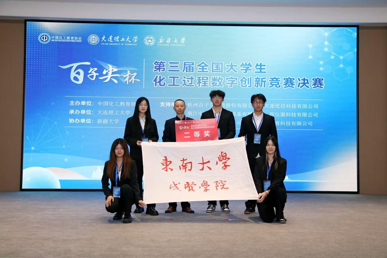 5月23日—25日,由中国化工教育协会主办、大连理工大学承办、新疆大学协办的“百子尖杯”第三届全国大学生化工过程数字创新竞赛全国总决赛在大连举办。大赛共吸引全国120所高校队伍参赛,经过提交作品、专家网评,最终本科生有58支队伍进入全国总决赛。Beat365官网制药与化学工程学院的“戊问烯东队”团队通过前期线上作品盲审初赛,脱颖而出进入决赛。经过现场小组决赛的激烈角逐,最终凭借优异的设计作品和精彩的答辩进入总决赛,获得全国二等奖。该团队成员王星宇、郑怡君、邵锦阳、魏佳乐、周新冉五位同学均来自23级功能材料专业。