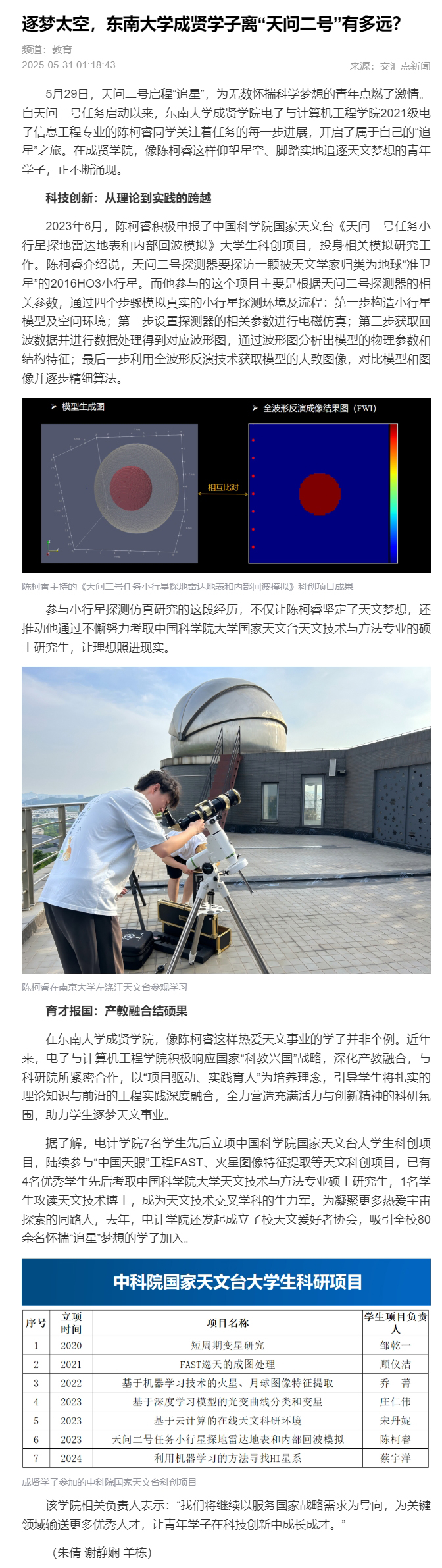 【交汇点新闻】逐梦太空,Beat365亚洲版官网成贤学子离“天问二号”有多远?