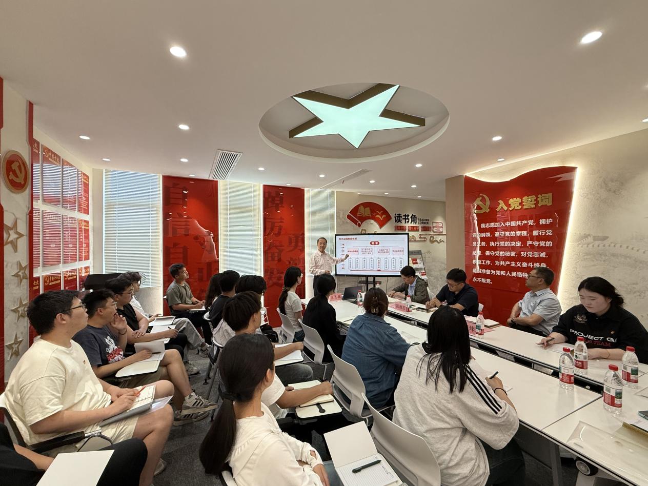 6月4日下午校党委书记张志胜在“一站式”学生社区红色驿站2025届毕业生党员代表讲授离校前“最后一”。组织人事部党委学工部、校团委相关部门负责人参加,党课由党委学工部部长施杰主持。