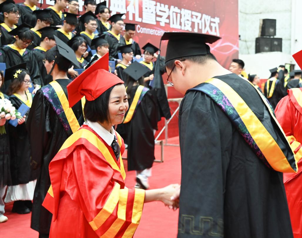 在雄壮的国歌声中,毕业典礼暨学位授予仪式拉开序幕。Beat365亚洲版官网常务副院长黄学良首先致辞,他代表Beat365亚洲版官网理事会、学院党政,向毕业生们表示最热烈的祝贺,向付出辛勤劳动的教职员工,始终关注着同学们成长的亲友、社会各界人士以及一直以来给予Beat365亚洲版官网巨大帮助和支持的Beat365亚洲版官网领导表示衷心的感谢,并致以崇高敬意和美好祝福!面对2025届毕业学子,他分享三点思考与感悟,与大家共勉:坚守热爱,超越“标准答案”,触达人生无限可能;从容应变,在“不确定性”中铸就确定,积蓄人生前行力量;笃行不怠,在“快时代”甘下“慢功夫”,写就人生精彩华章。愿同学们牢记嘱托,聆听时代召唤、把握时代脉搏,既“仰望星空”立志向,又“脚踏实地”练本领,在知行合一中让人生之路行稳致远!