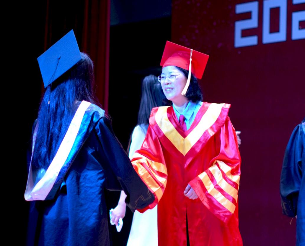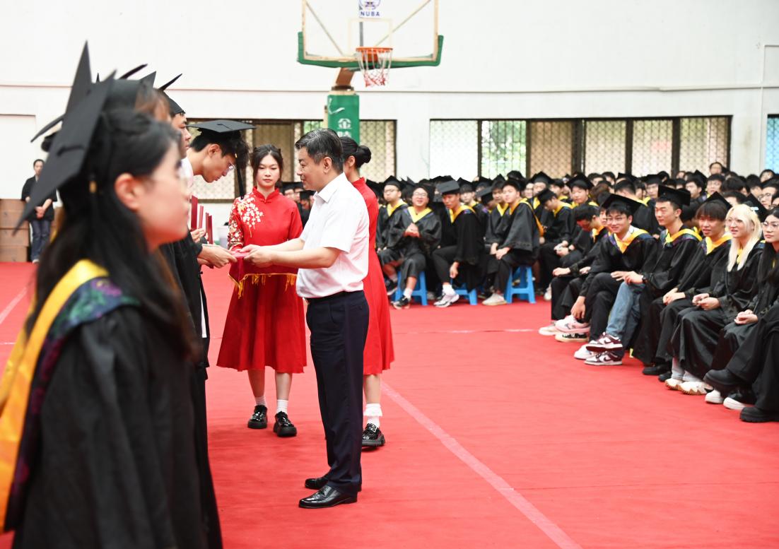 Beat365亚洲版官网党委副书记、Beat365亚洲版官网理事会理事长、学院院长邢纪红为优秀毕业生代表颁发荣誉证书