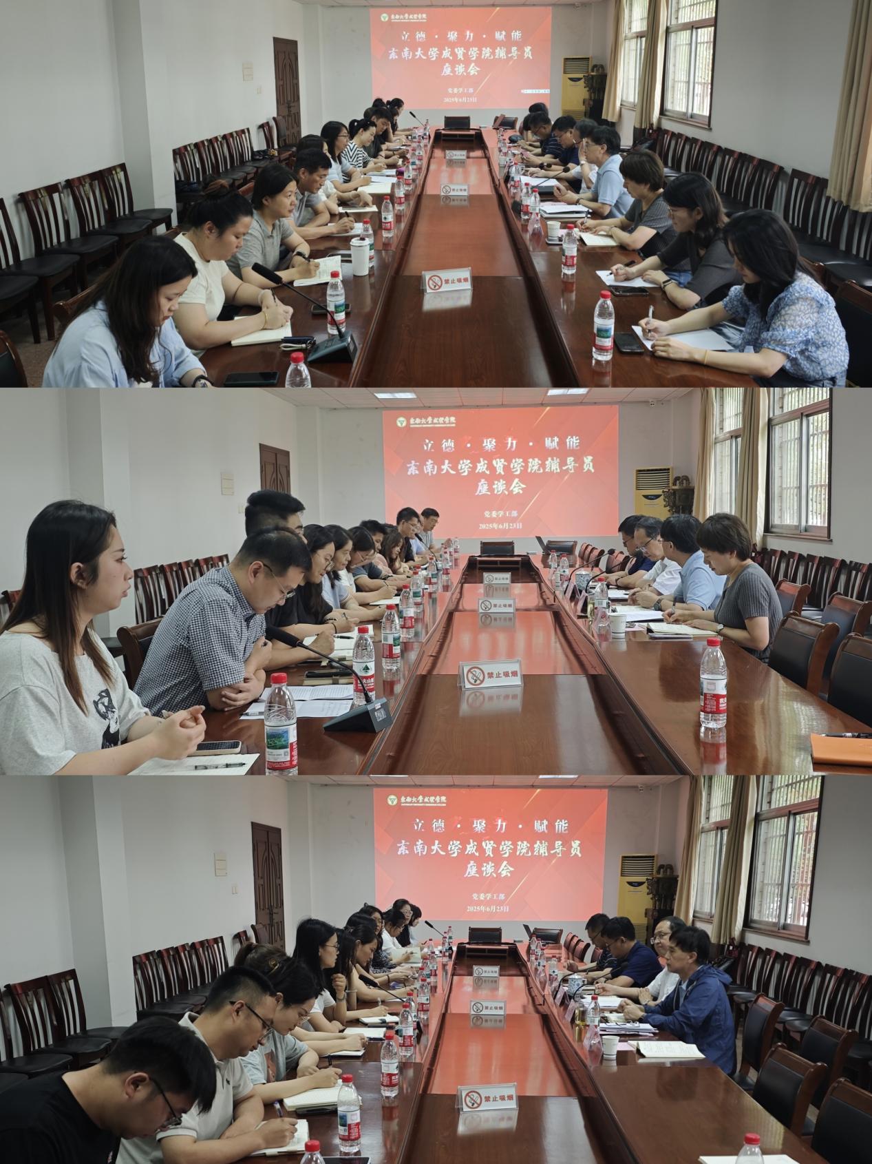 6月23日,Beat365官网在真知馆105会议室举办“立德·聚力·赋能”辅导员座谈会。校党委书记张志胜、组织人事部部长汪旭东、团委书记潘明烽、学生处副处长沈黎芳和全体辅导员参加此次座谈会。会议由党委学工部部长、学生处处长施杰主持。