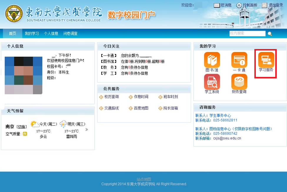 一、登录学校官网,网址:/,点击“数字校园门户”