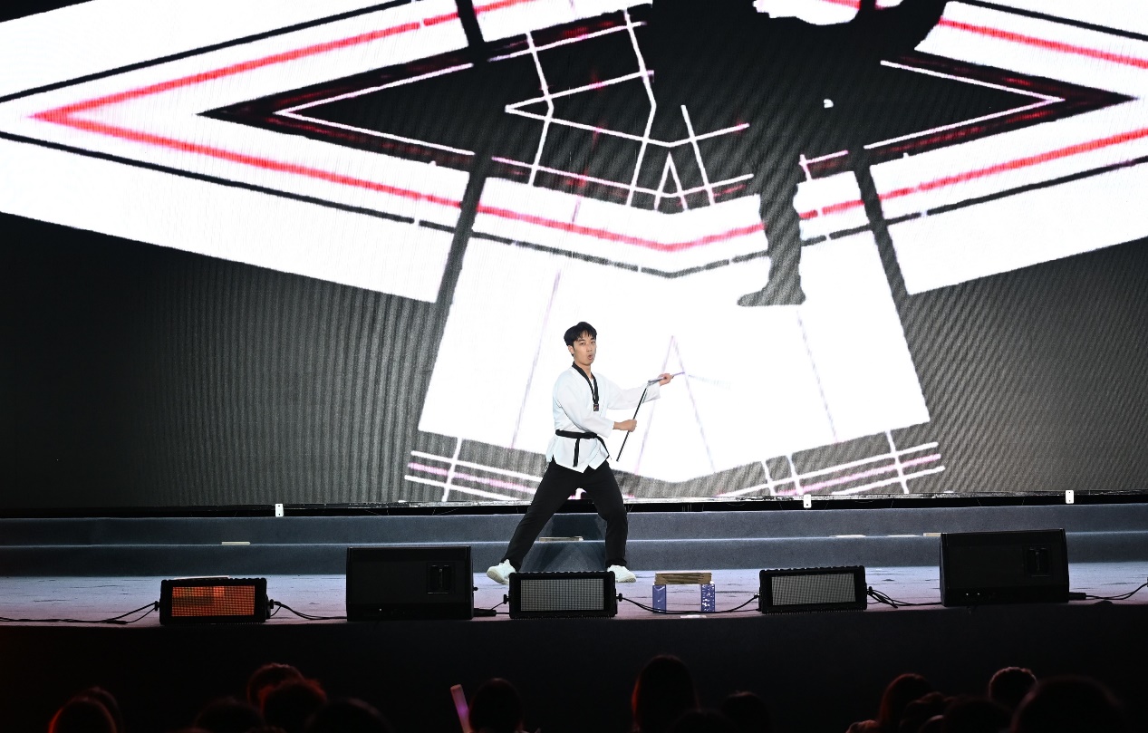 晚会期间,军训纪实与团委活动回顾视频穿插播放,带领新生重温成长足迹,全方位感知成贤校园的文化活力与育人温度。现场掌声与喝彩交织,每一个节目都凝聚着台前幕后师生的心血,不仅展现了成贤学子多才多艺、全面发展的精神风貌,更成为新生融入校园、坚定理想的“第一课”。