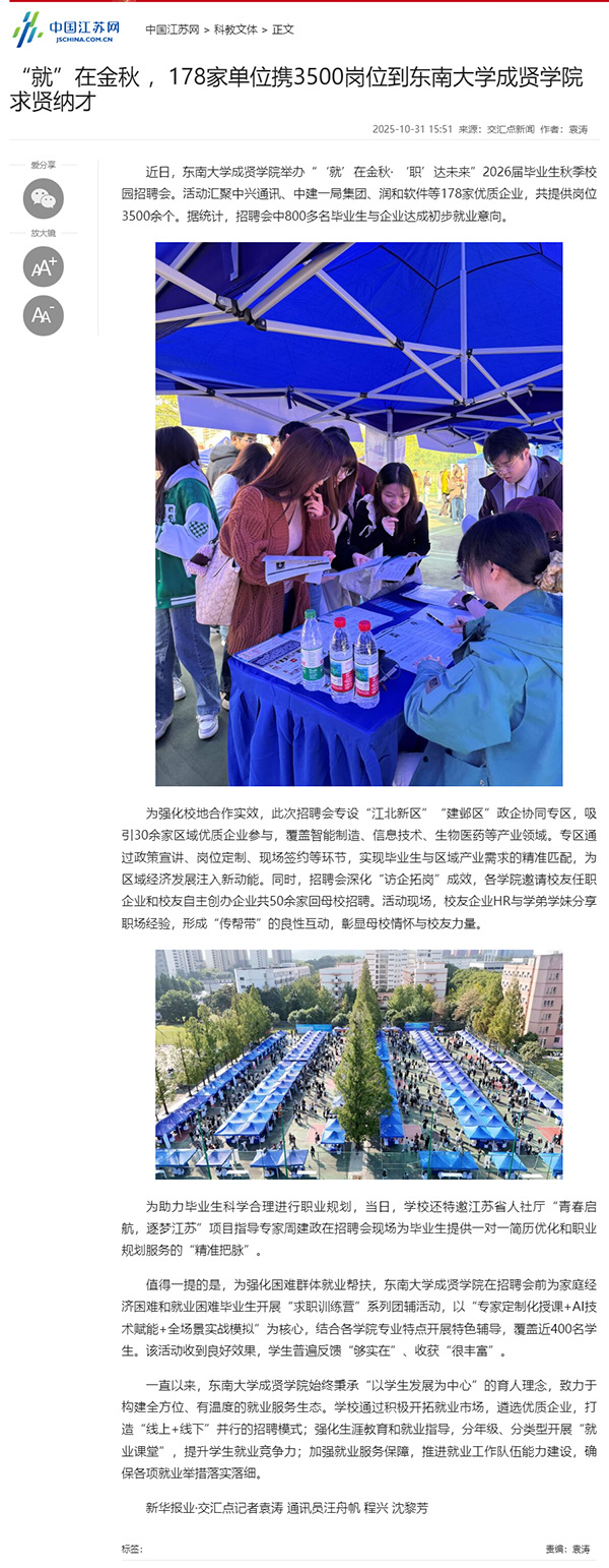 【中国江苏网】“就”在金秋,178家单位携3500岗位到Beat365亚洲版官网求贤纳才