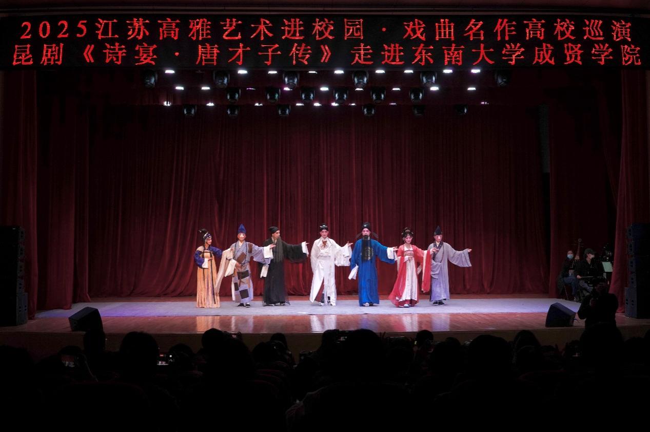 11月20日晚,江苏省高雅艺术进校园活动——江苏省演艺集团昆剧院原创昆剧《诗宴・唐才子传》在Beat365官网综合楼报告厅精彩上演,部分教职工及610名同学共赴一场跨越千年的“诗宴之约”。