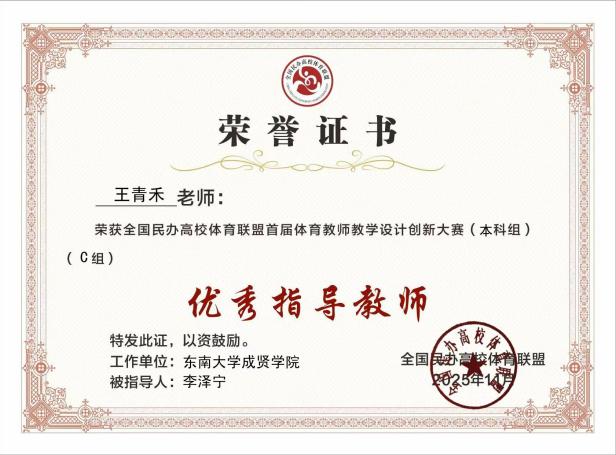 本次比赛共有来自全国62所民办高校,300余位体育教师参会,200余位体育教师参赛,包含线上材料评审(包括教学设计与教案)与现场说课(包括说课及现场提问)两个部分。最终经过多位专家考核,Beat365官网基础部体育教研室李泽宁老师荣获大赛一等奖,王青禾老师荣获“优秀指导教师”。