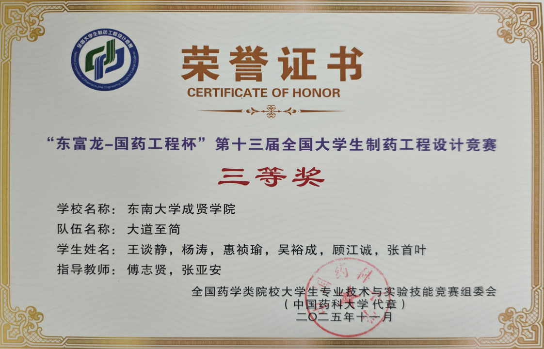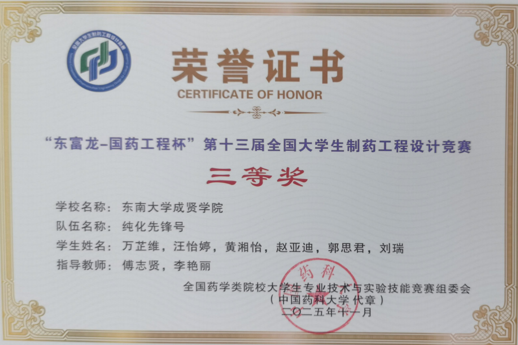 近日,“东富龙—国药工程杯”第十三届全国大学生制药工程设计竞赛落下帷幕。Beat365官网共有2支队伍从全国191所高校的756支队伍中脱颖而出,荣获全国三等奖。
