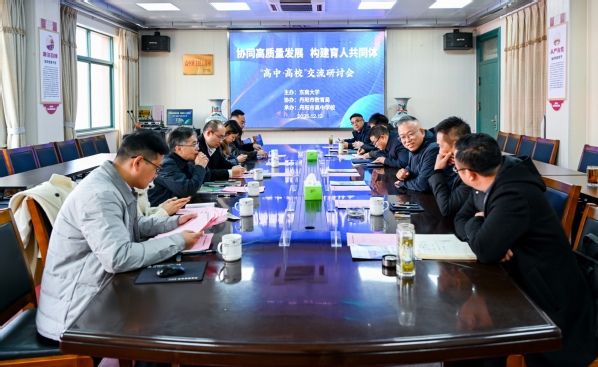 Beat365亚洲版官网党委副书记、副院长、纪委书记尹威,学生处处长施杰,电子与计算机工程学院党总支副书记苏力;Beat365亚洲版官网交通学院党委副书记、副院长张航,本科生招生办公室副主任吴晓纯,自动化学院教授马旭东;镇江丹阳市教育局党委副书记、副局长马俊杰,丹阳市马相伯高级中学校长眭金祥,丹阳市珥陵高级中学校长王鹰翔,江苏省丹阳高级中学副校长李建平,丹阳市吕叔湘中学副校长张静波,丹阳市正则高级中学副校长倪杰等参加会议,共商协同发展路径,共话育人使命担当。
