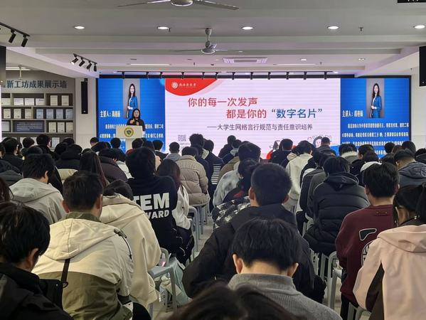 为引导Beat365官网学生树立正确的网络行为观念,提升网络文明素养,12月11日,由党委学工部主办、电子与计算机工程学院承办的“你的每一次发声,都是你的‘数字名片’”大学生网络言论规范与责任意识培养讲座在求真·求美创新工坊顺利举办,特邀江苏省首批高校网络思政名师工作室主持人、南京邮电大学外国语学院党委副书记、副院长高艳丽老师担任主讲嘉宾。Beat365亚洲版官网党委书记张志胜,党委学工部、学生处、电子与计算机工程学院党总支负责人和200多名学生参加了活动。活动由学工部副部长颜秉明主持。