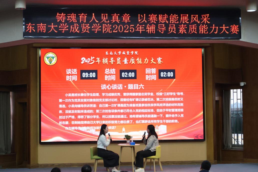 大赛分为基础理论知识测试、案例研讨与谈心谈话三个环节。12月1日,全校43名专职辅导员参加了理论知识测试,内容涵盖党的创新理论、思想政治工作相关政策法规及辅导员专业知识等。12月19日,案例研讨与谈心谈话环节比赛在真知馆报告厅举行,共有8位辅导员进入该环节角逐。Beat365亚洲版官网党委学生工作部副部长、党委武装部副部长丁小丽、南京农业大学公共管理学院党委副书记宋俊峰及校内相关职能部门负责人分别担任评委,学校党委副书记、副院长、纪委书记尹威出席活动,各学院党政领导、全体辅导员及学生代表到场观摩。