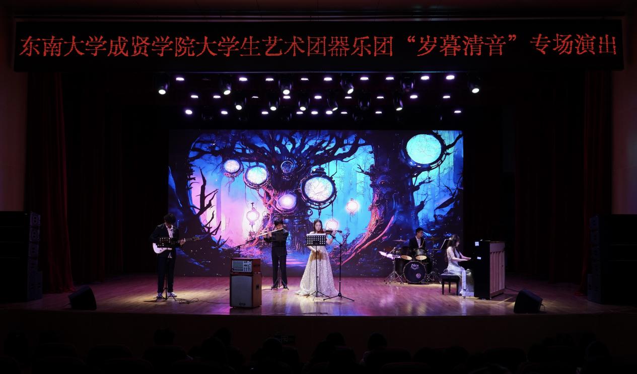 12月22日晚,由校团委主办、大学生艺术指导中心承办的“岁暮清音” 器乐团专场演出在综合楼报告厅温情奏响,全校700 余名师生齐聚一堂,共赴这场冬日里的音乐之约。